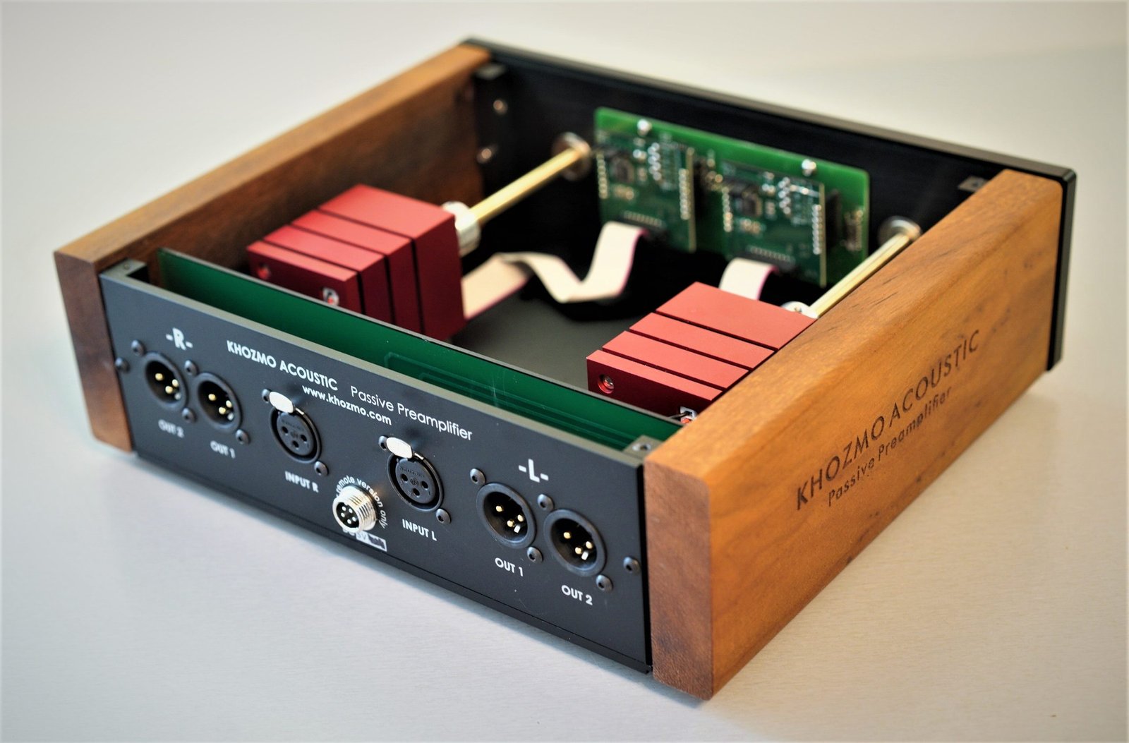 Khozmo preamps are known for their high-quality audio performance and transparent sound reproduction. Khozmo is a brand that specializes in manufacturing passive preamplifiers using high-quality components and precise engineering techniques.
