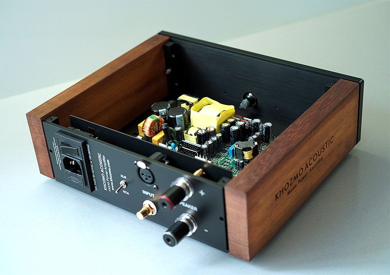 The KHOZMO NC250 is a self-contained high-performance class D amplifier intended for a wide range of audio applications, ranging from public address systems to ultrahigh-fidelity replay systems for studio and home use. Chief distinguishing features are flat frequency response irrespective of load impedance, nearly frequency independent distortion behaviour and very low radiated and conducted EMI.