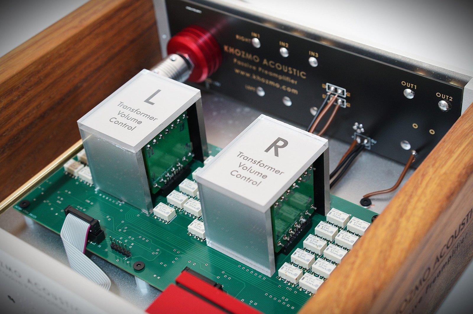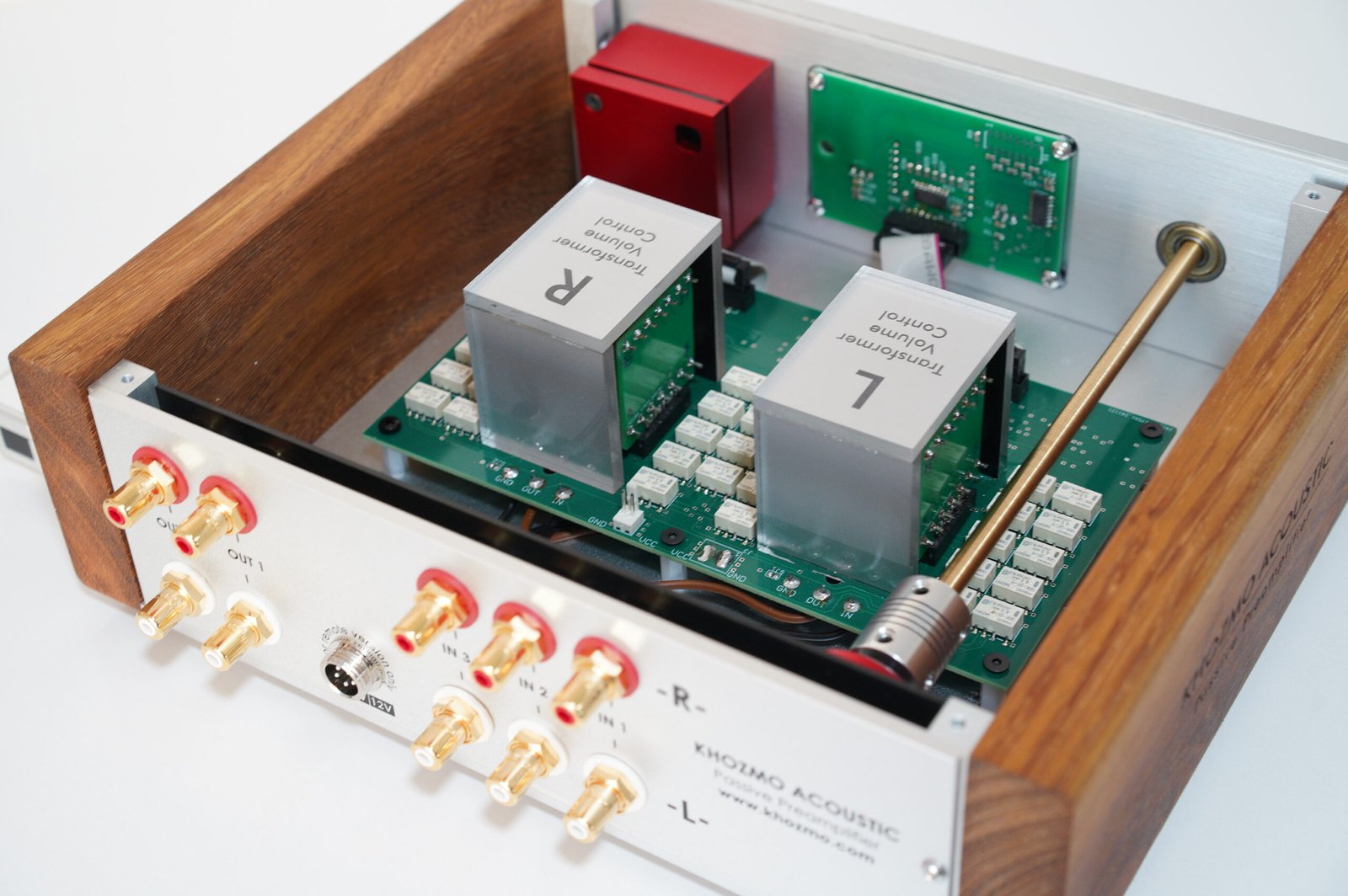 L’un des facteurs clés contribuant à la qualité sonore des préamplis Khozmo est l’utilisation de potentiomètres (atténuateurs) et de transformateurs de haute qualité. Le potentiomètre est un composant essentiel d’un préampli passif, car il détermine la précision du contrôle du volume et de la balance des canaux. Khozmo utilise des potentiomètres de haute précision qui offrent un excellent suivi et un faible bruit, garantissant un réglage du volume fluide et précis sans compromettre la qualité sonore.